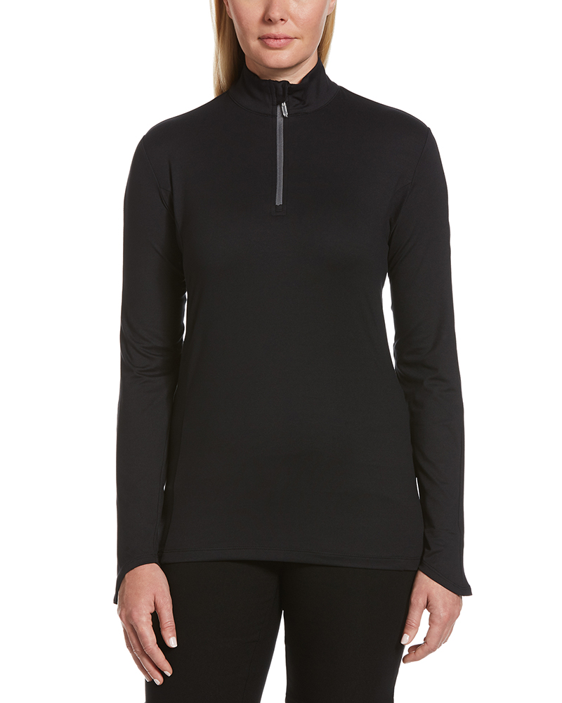 5.6 oz 88% Polyester / 12% Spandex double knit brushed fabric with water repellent finish. Stretch to give you full range of motion. UV Repel technology keeps skin safe from the sun's harmful rays UPF 50+. Quarter-zip with reverse coil zipper with Callaway logo pull and zipper garage. Vertical chest pocket with Callaway logo pull. Overlock stitch detail on sleeve. Heat Seal Label provides Tag-Free Comfort. Contrast embroidered Callaway logo on right sleeve.