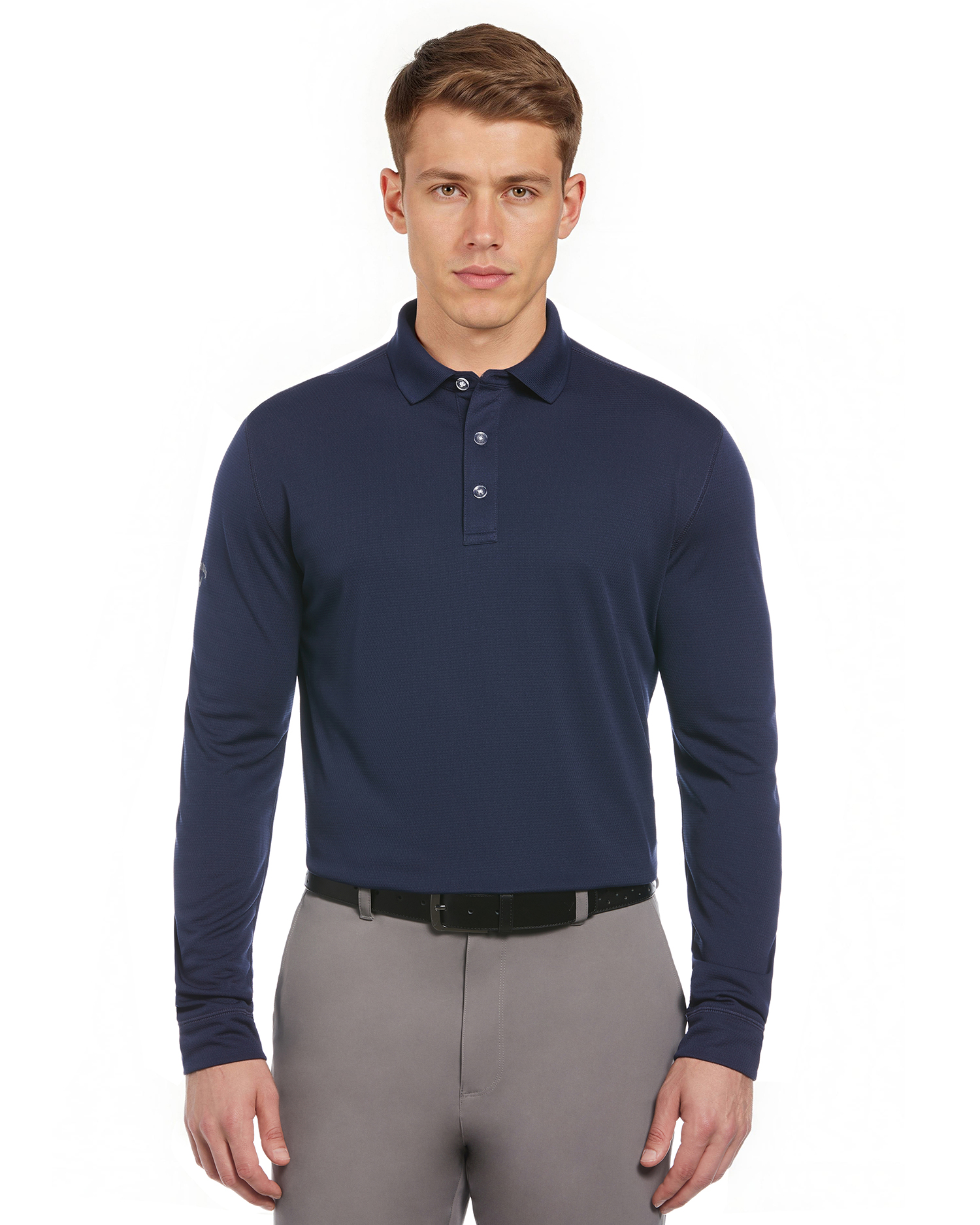 5.4 oz 95% polyester / 5% spandex jersey knit poly blend. Opti-Dri technology transfers moisture away from the body to keep you cool and dry. Stretch to give you full range of motion. UV Repel technology keeps skin safe from the sun's harmful rays. UPF 50. 3-snap placket with Chevron embossed snaps. Bottom coverstitch hem. Self-fabric collar. Heat seal label provides tag-free comfort. Contrast heat seal Chevron logo on back collar.