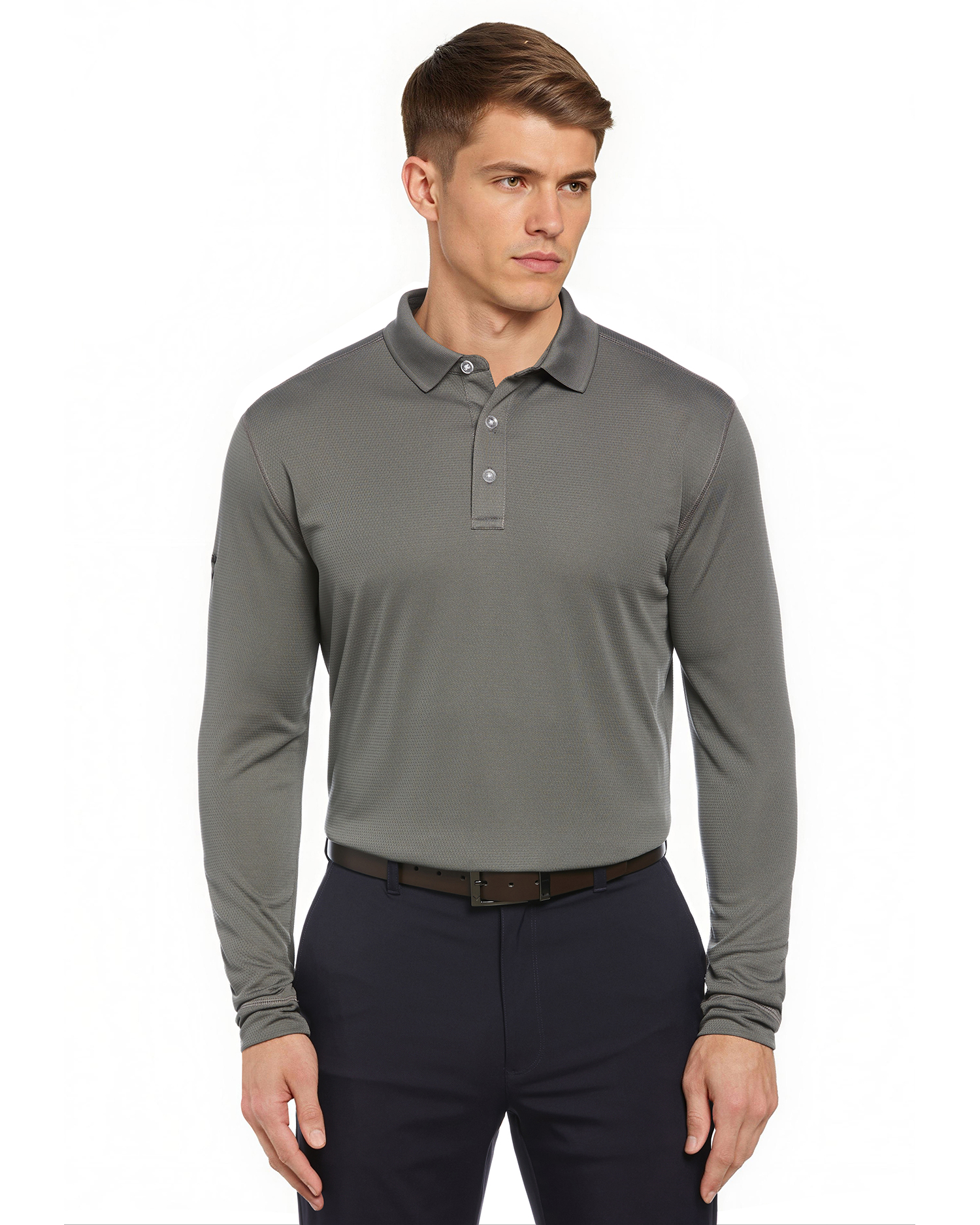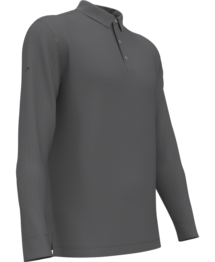 5.6 oz 100% polyester double knit mesh fabric. Opti-Dri technology transfers moisture away from the body to keep you cool and dry. 3-button placket with Callaway embossed buttons. Rib knit collar. Heat seal label provides tag-free comfort. Contrast embroidered Callaway logo on right sleeve.