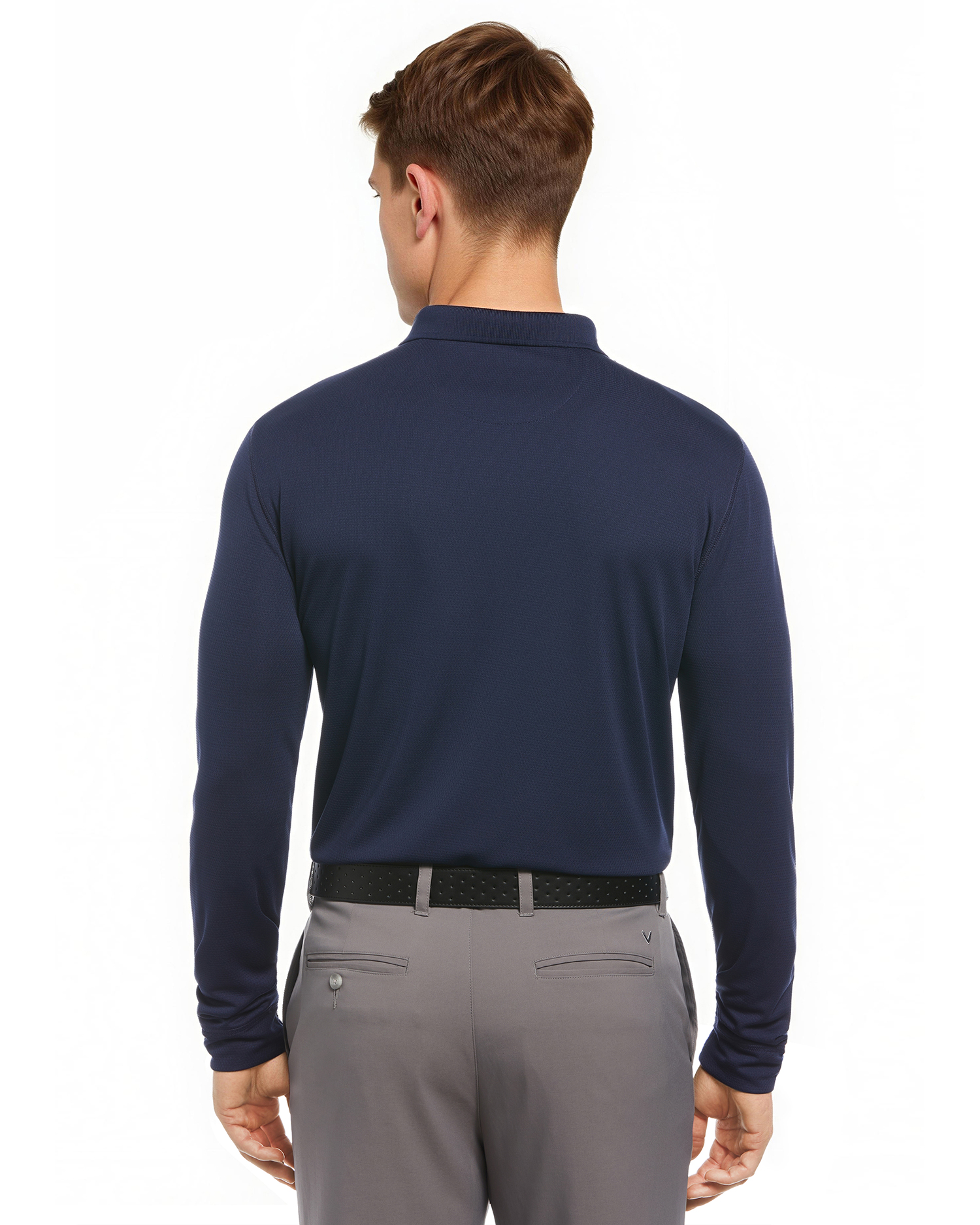 5.6 oz 100% polyester double knit mesh fabric. Opti-Dri technology transfers moisture away from the body to keep you cool and dry. 3-button placket with Callaway embossed buttons. Rib knit collar. Heat seal label provides tag-free comfort. Contrast embroidered Callaway logo on right sleeve.