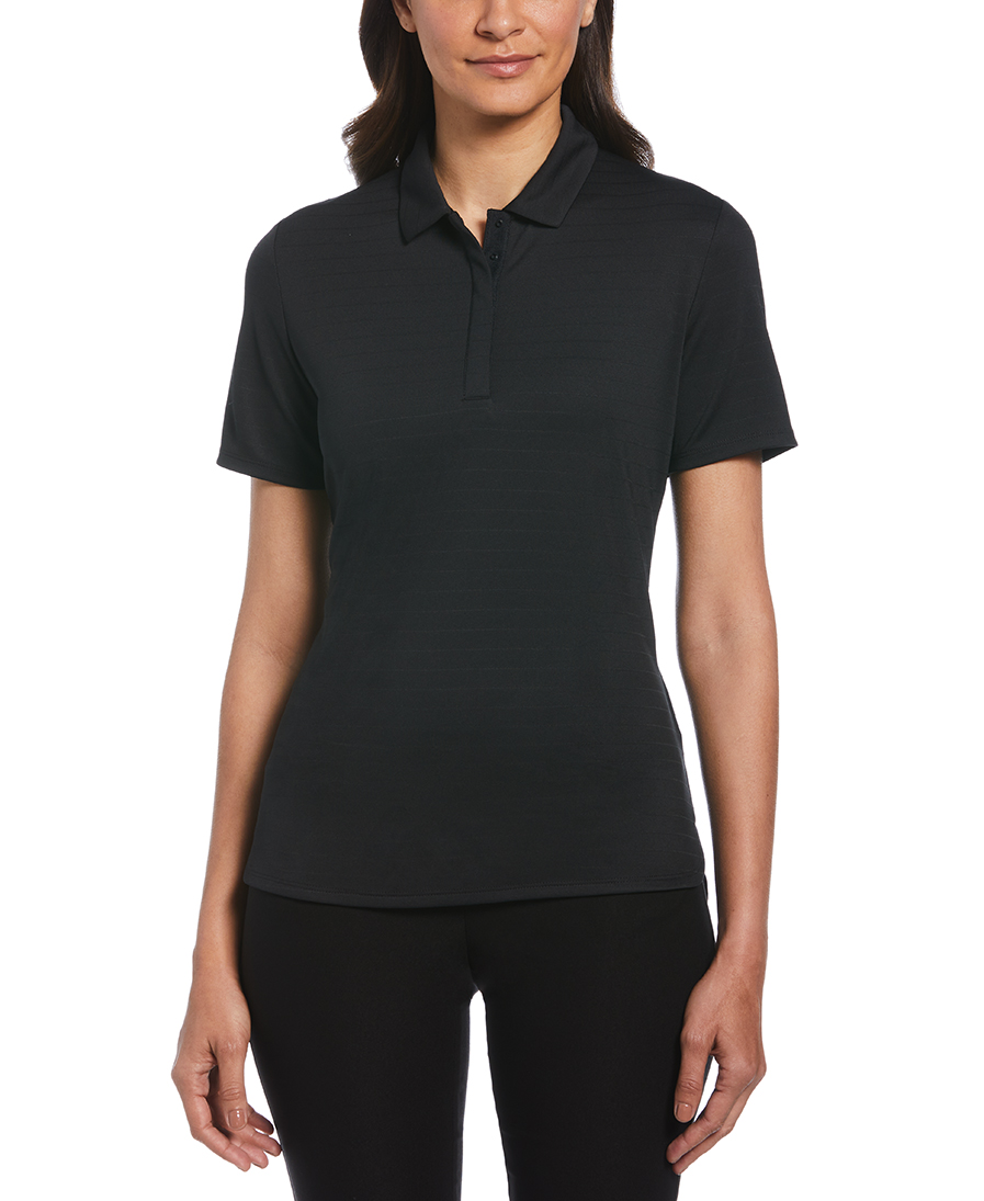 4.8 OZ, 70% polyester, 30% recycled polyester jersey knit fabric. Opti-Dri technology transfers moisture away from the body to keep you cool and dry. UV Block technology keeps skin safe from the sun's harmful rays. UPF 50+. Rib knit collar. 3-button placket with Callaway embossed buttons. Double needle hemmed bottom with side vents. Heat seal label provides tag-free comfort. Tonal embroidered Callaway TOUR logo on right sleeve.