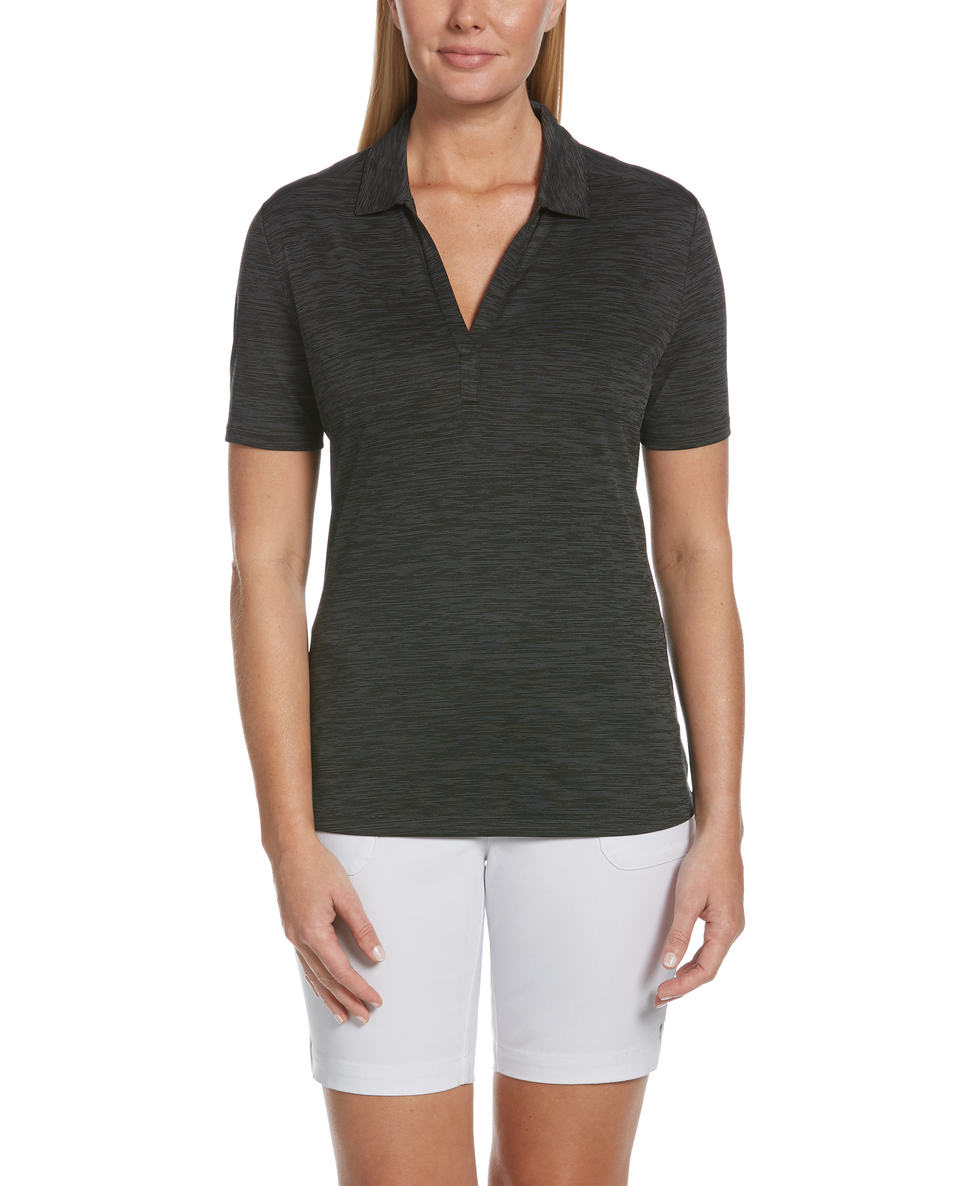 Opti-Dri technology transfers moisture away from the body to keep you cool and dry. UV Block technology keeps skin safe from the sun's harmful rays. UPF 15+. Self fabric collar. 3-button placket, open sleeve. Double needle hemmed bottom with side vents. Heat seal label provides tag-free comfort. Tonal embroidered Callaway TOUR logo on right sleeve.