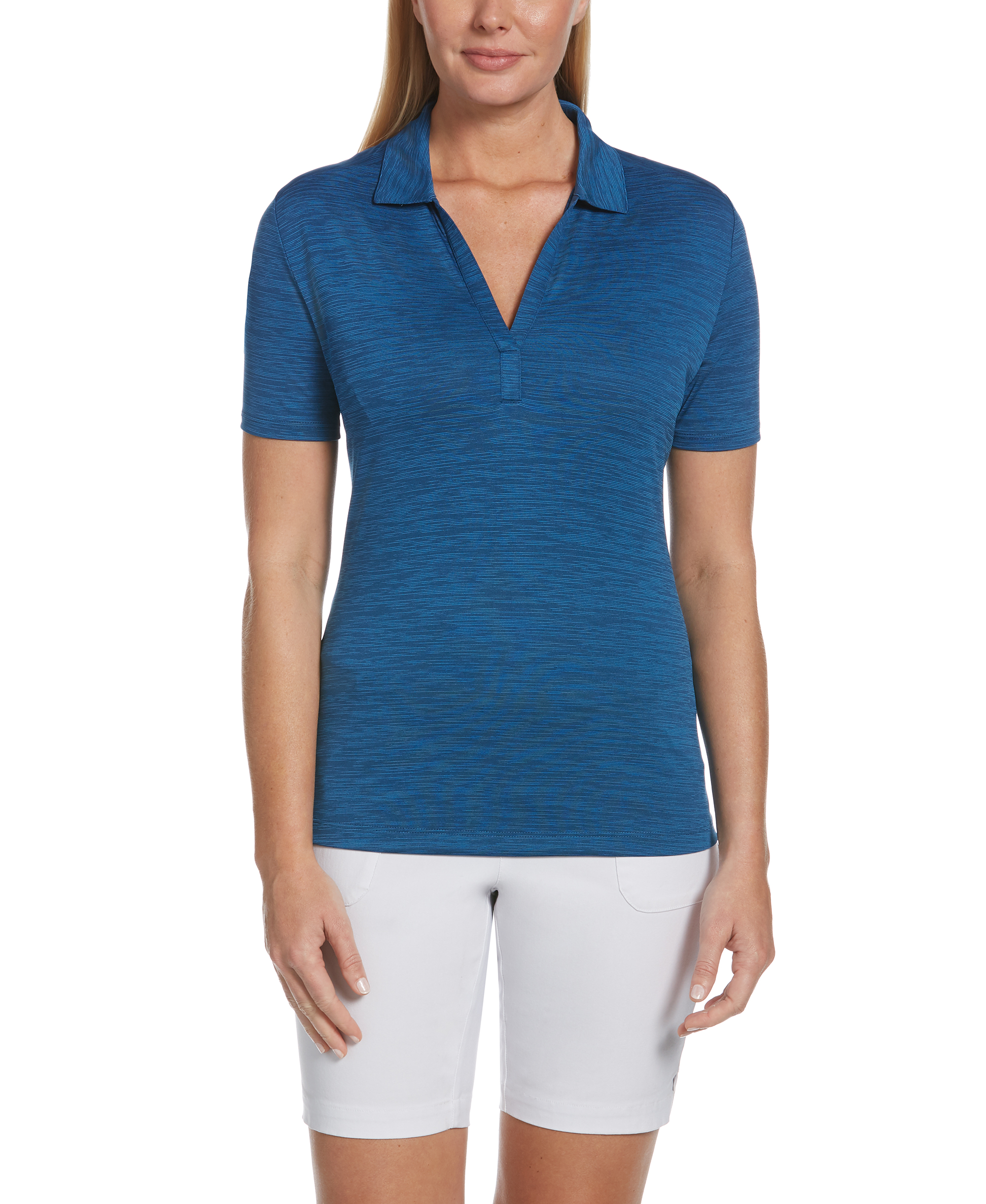 Opti-Dri technology transfers moisture away from the body to keep you cool and dry. UV Block technology keeps skin safe from the sun's harmful rays. UPF 15+. Self fabric collar. 3-button placket, open sleeve. Double needle hemmed bottom with side vents. Heat seal label provides tag-free comfort. Tonal embroidered Callaway TOUR logo on right sleeve.